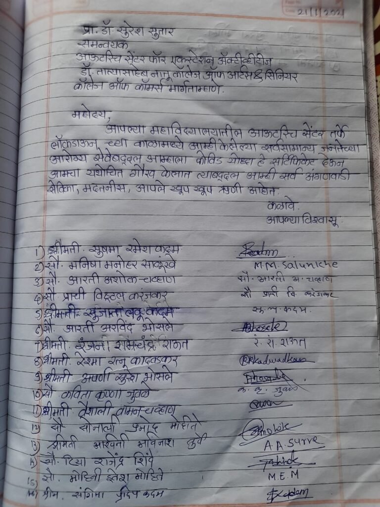 • Feedback from a college whose teachers are felicitated as covid warriors by our outreach center