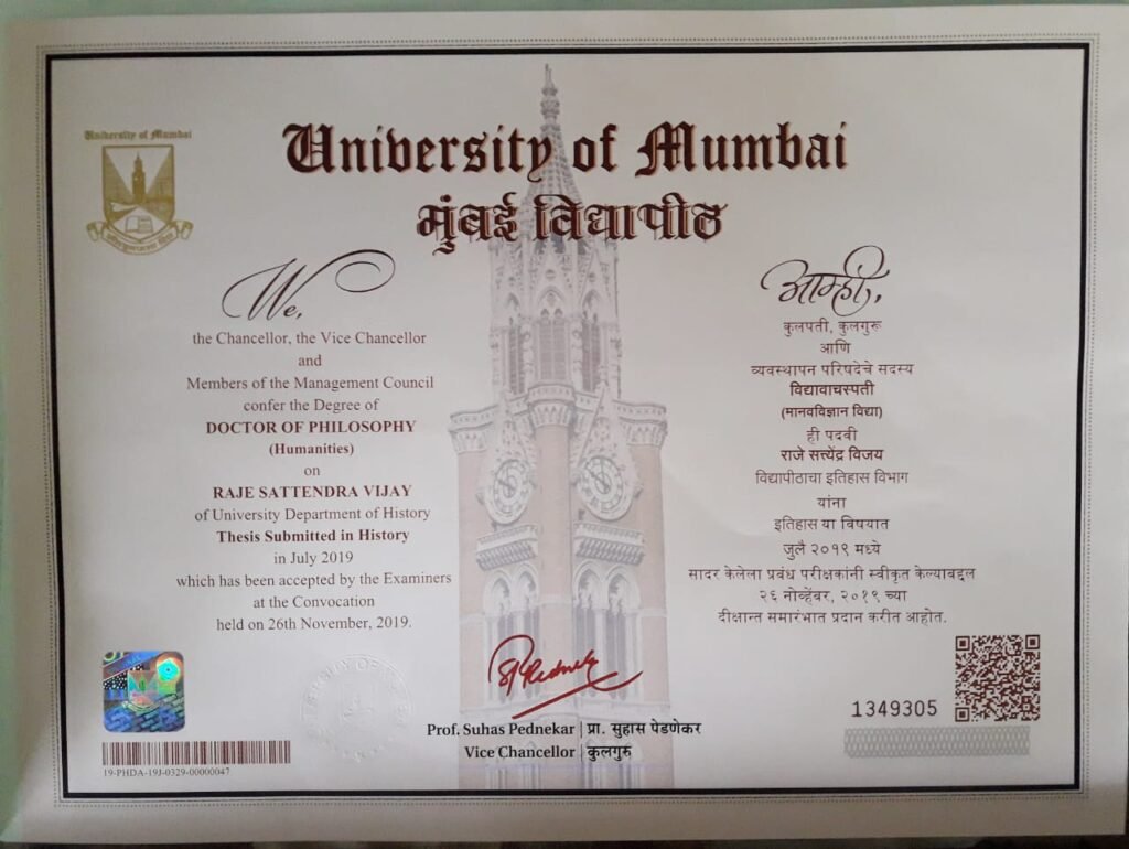 Prof. Raje – Certificate of Ph D
