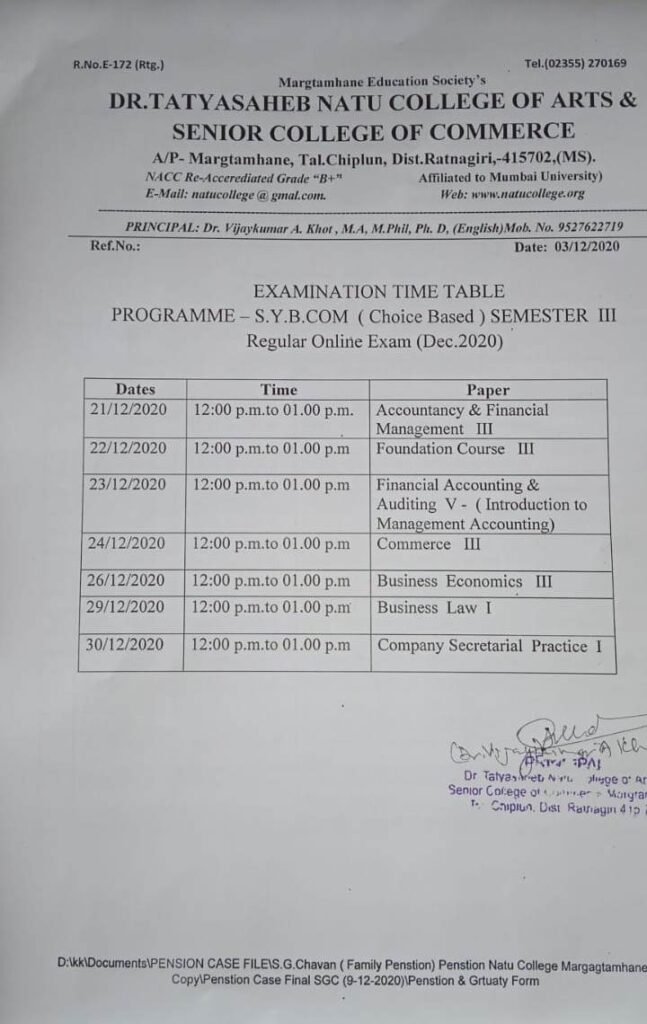 S.Y.B.com SEM III ( exam time table )
